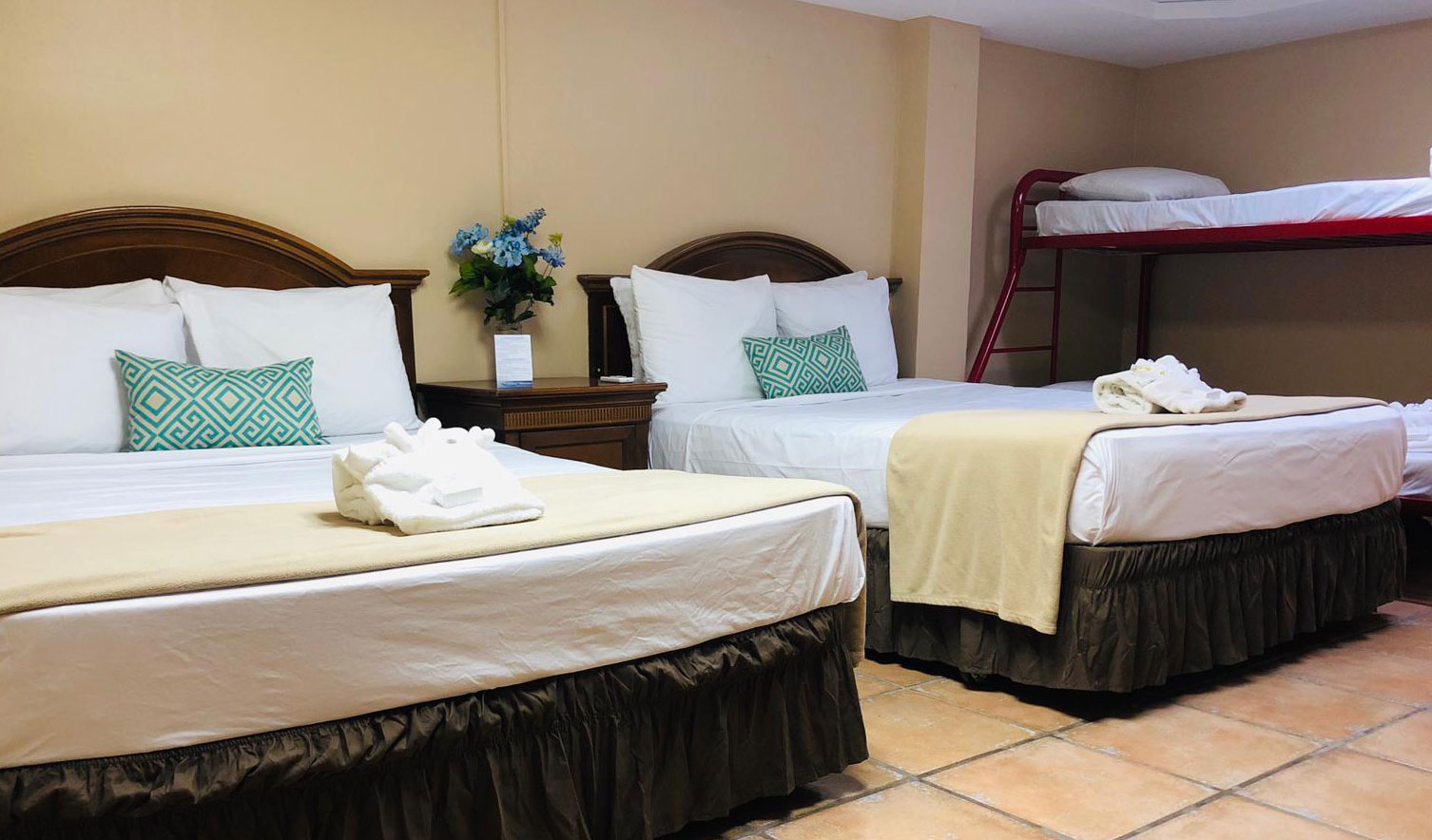 Escoja entre nuestras opciones de acomodo que más le guste de una cama, dos camas, habitaciones familiares para hasta 6 personas y La casita con acomodo para hasta 8 personas. Todas las habitaciones cuentan vouchers de desayunos según ocupación con tarifa.
